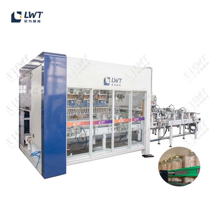 Bu makine cam kavanoz, demir kutular, plastik kavanozlar, büyük ağızlı şişeler ve benzeri için uygundur.,Soya sosu, et, tavuk, balık ve benzeri, her türlü katı ürünler konserve, ölçme ve doldurma.